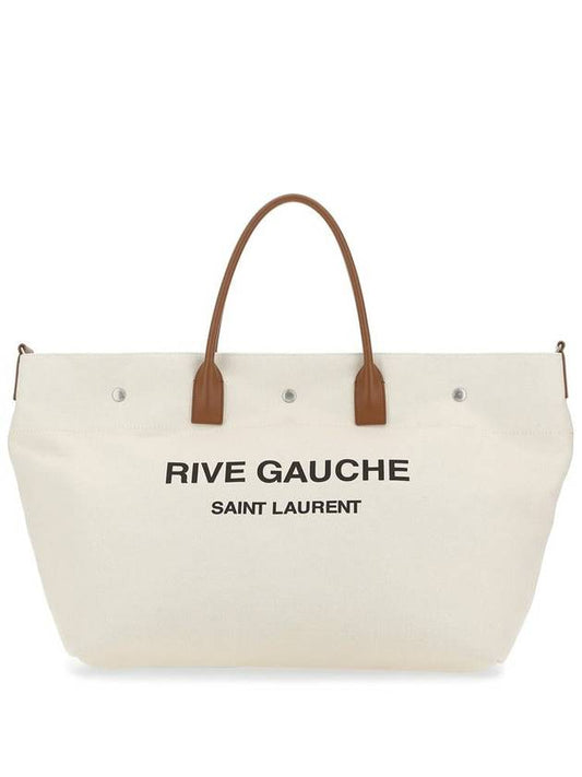 Saint Laurent Rive Gauche Canvas Tote Bag Ivory Brown