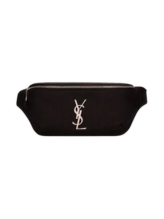 Saint Laurent Cassandre Classic Canvas Leather Belt Bag Black