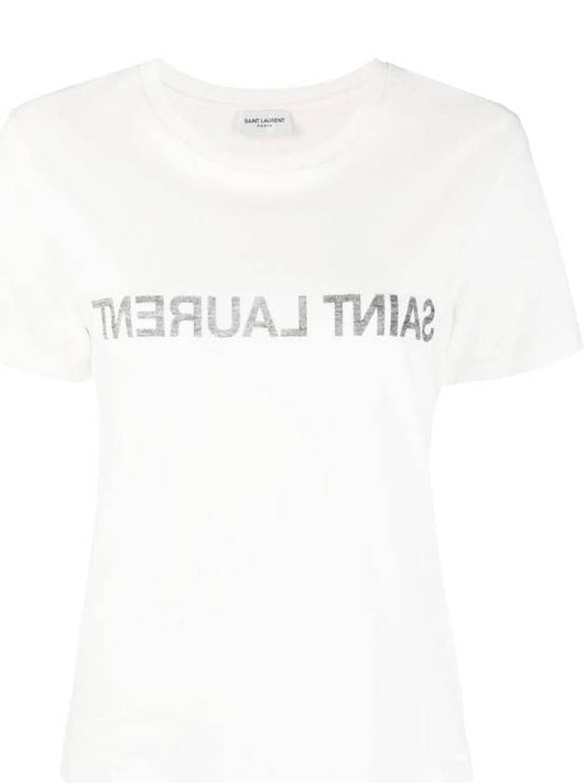 Saint Laurent Reverse Short Sleeve T-Shirt Nature Et Noir