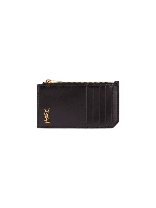Saint Laurent Monogram Leather Gold Zipper Card Wallet Black