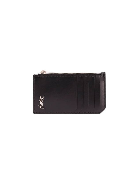 Saint Laurent Leather Zipper Classic Fragment Card Wallet Black