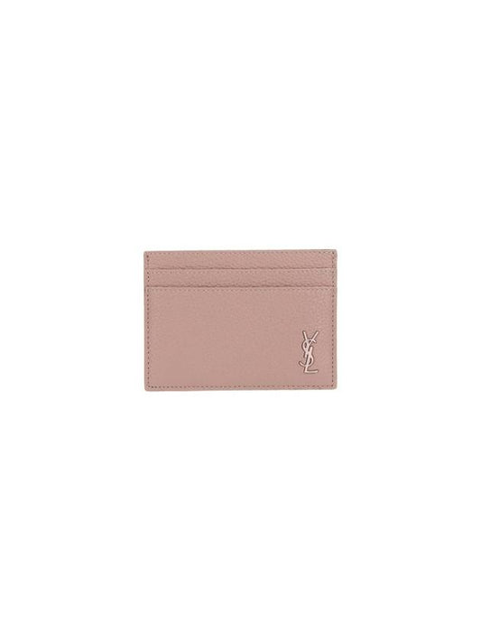 Saint Laurent Casandre Small Grain Leather Card Wallet Greysih Brown