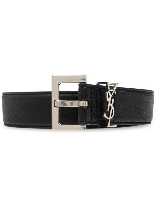 Saint Laurent Cassandre Lambskin Leather Belt Black