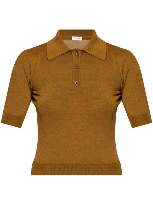 Saint Laurent Cassandre Cashmere Polo Shirt Brown