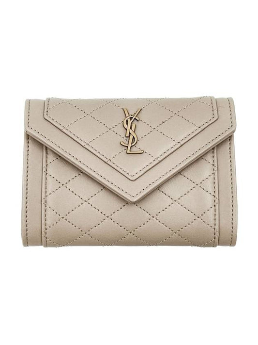 Saint Laurent Gabi Envelope Quilting Small Lambskin Half Wallet Beige