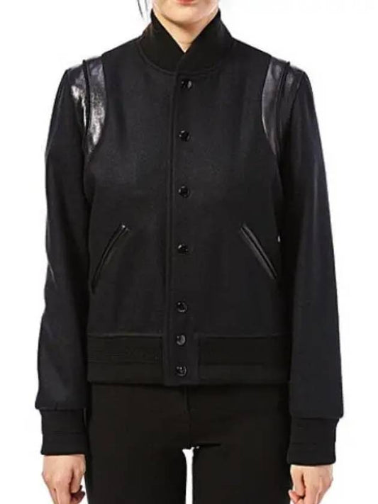 Saint Laurent Women's Wool Varsity Bomber Jacket Black
