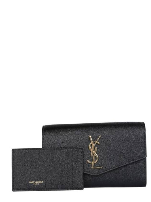 Saint Laurent Monogram Uptown Chain Embossed Leather Long Wallet Black