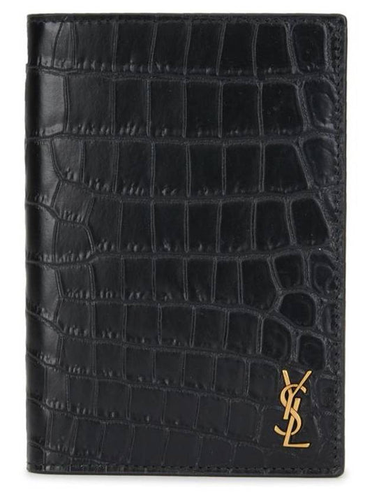 Saint Laurent Monogram Crocodile Card Passport Wallet Black