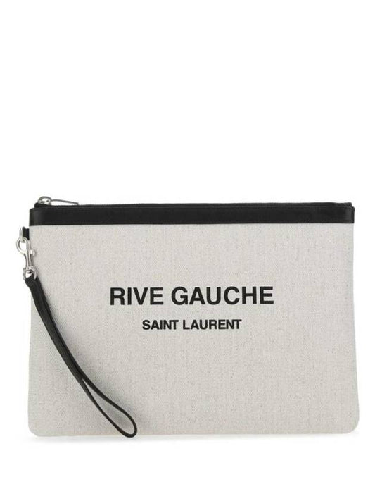 Saint Laurent Rive Gauche Zipper Strap Canvas Clutch Bag White