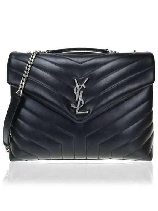 Saint Laurent Silver Monogram Loulou Matelasse Y Leather Medium Shoulder Bag Black