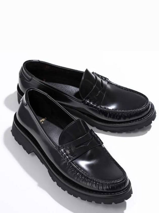 Saint Laurent Women's Chunky Penny Slippers Smooth Leather Loafers Black