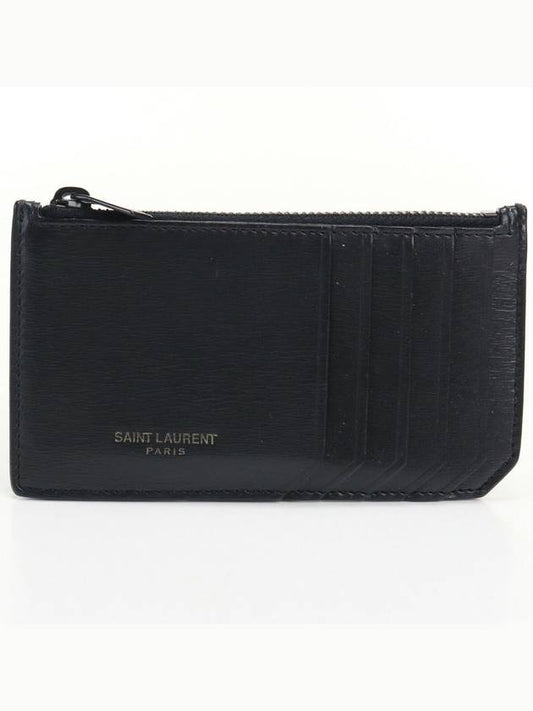 Saint Laurent Lizard Pattern Embossed Fragment Zipper Card Wallet Black