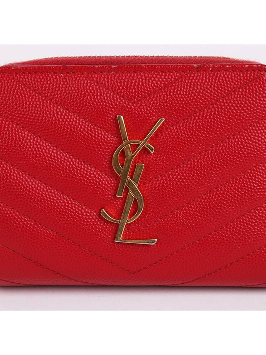 Saint Laurent 559193 Red Matelasse Quilted Calfskin Gold Monogram Tablet New Medium Pouch Clutch