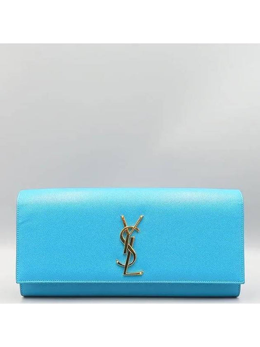 Saint Laurent 326079 Blue leather SAC CASSANDRE YSL gold logo flap clutch
