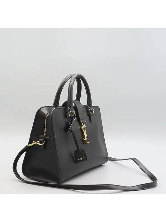 Saint Laurent 672667 Black leather cabas gold logo tote bag shoulder strap 2WAY