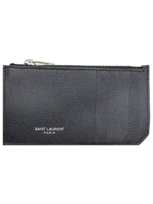 Saint Laurent Leather Zipper Classic Fragment Card Wallet Black