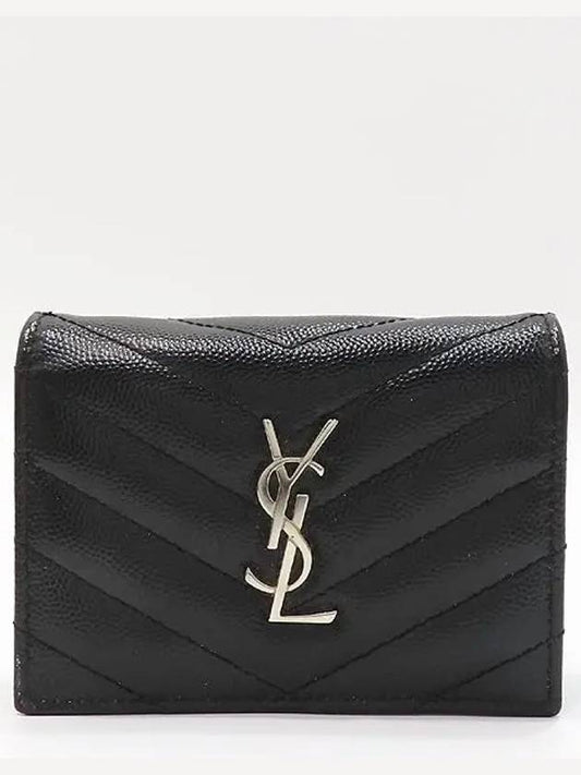 Saint Laurent 530841 Black leather monogram metal silver logo card holder bi fold wallet