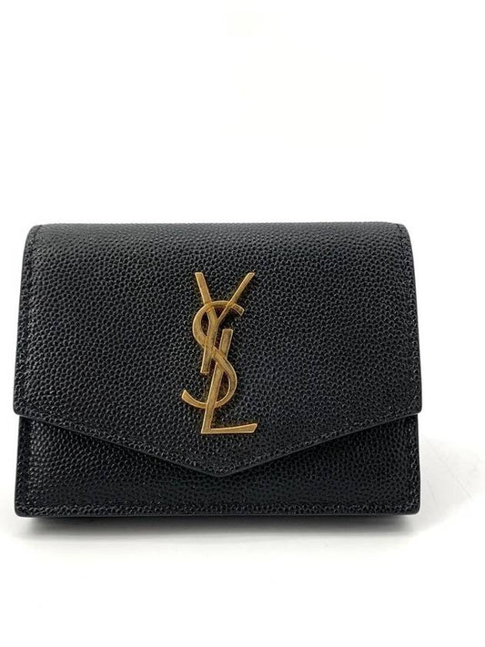 Saint Laurent Classic Logo Textured Leather Half Wallet Black