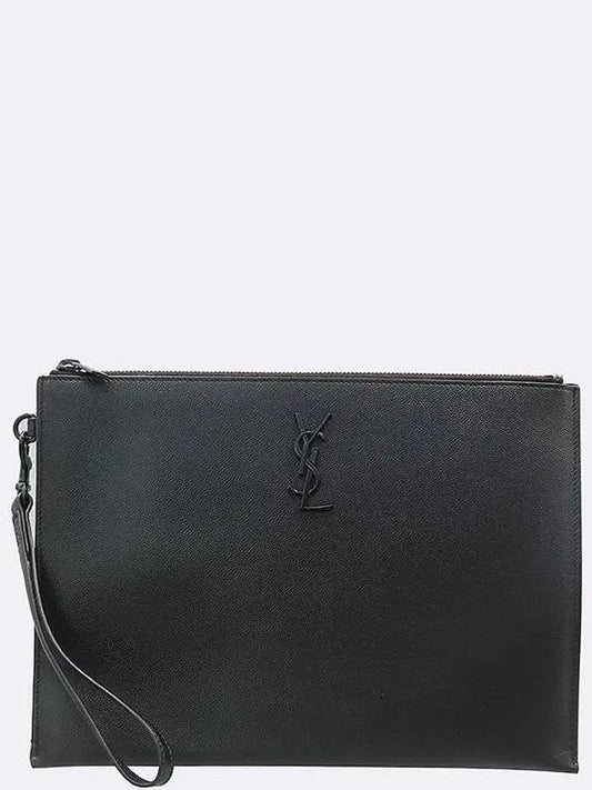 Saint Laurent 667686 Black Monogram Zippered Tablet Holder Clutch
