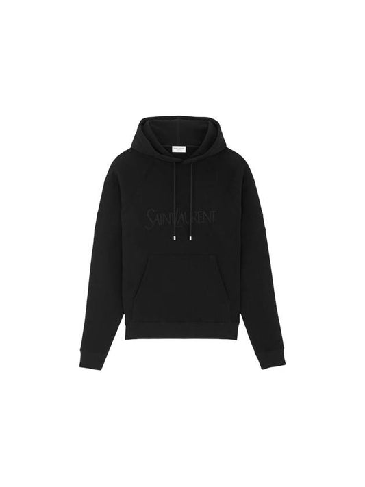 Saint Laurent Front Logo Cotton Hoodie Black