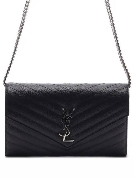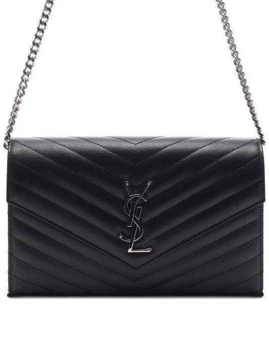 Saint Laurent Cassandre Matelasse Chain Cross Bag In Grain de Poudre Embossed Leather Black