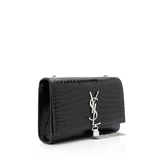 Saint Laurent Croc Embossed Leather Monogram Kate Tassel Small Shoulder Bag (SHF-BWswR2)