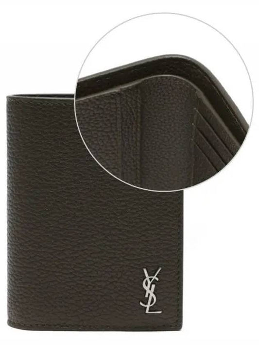 Saint Laurent Tiny Cassandre Credit Grained Leather Card Wallet Dark Khaki