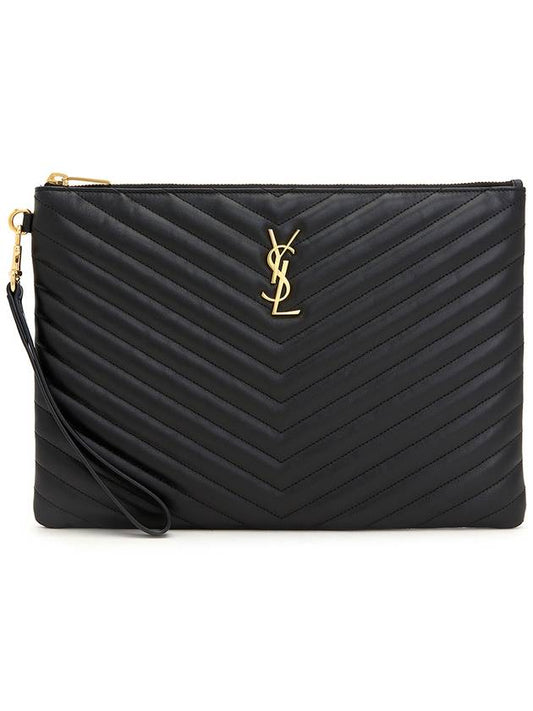 Saint Laurent Gold Monogram Matelasse Clutch Bag Black