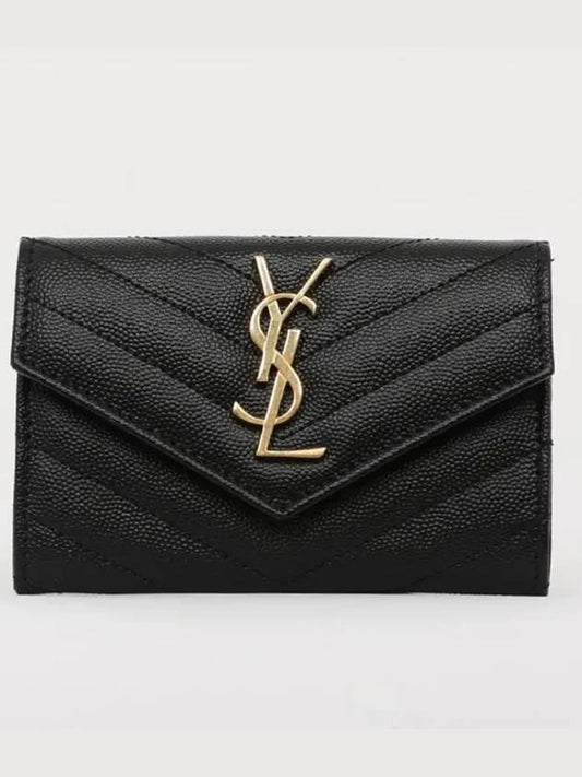 Saint Laurent Cassandre Matelasse Small Lambskin Card Wallet Black