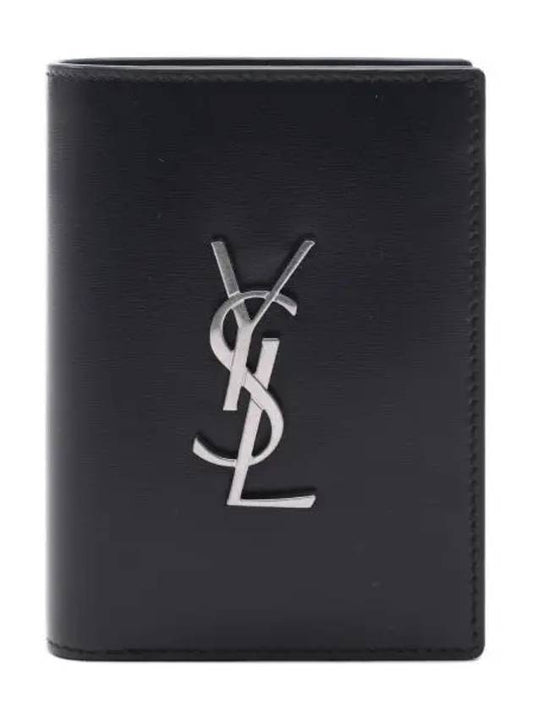 Saint Laurent Men's Silver Monogram Fold Half Wallet Black