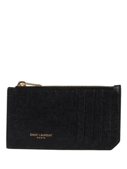 Saint Laurent Coated Bark Leather Fragment Zipper Card Wallet Black