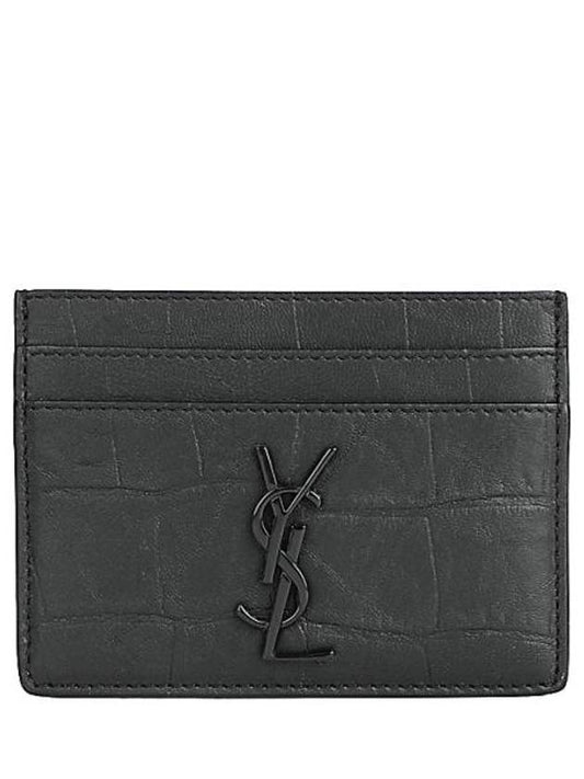 Saint Laurent Monogram Crocodile Leather Card Wallet Black