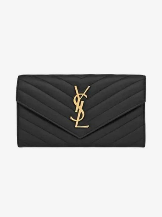 Saint Laurent Cassandre Matelasse Large Flap Lambskin Long Wallet Black