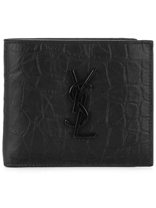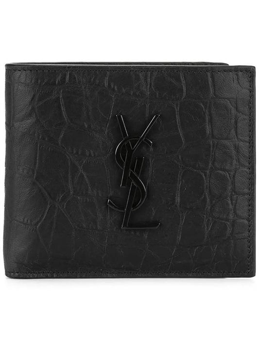 Saint Laurent Men's Monogram Crocodile Leather Half Wallet Black