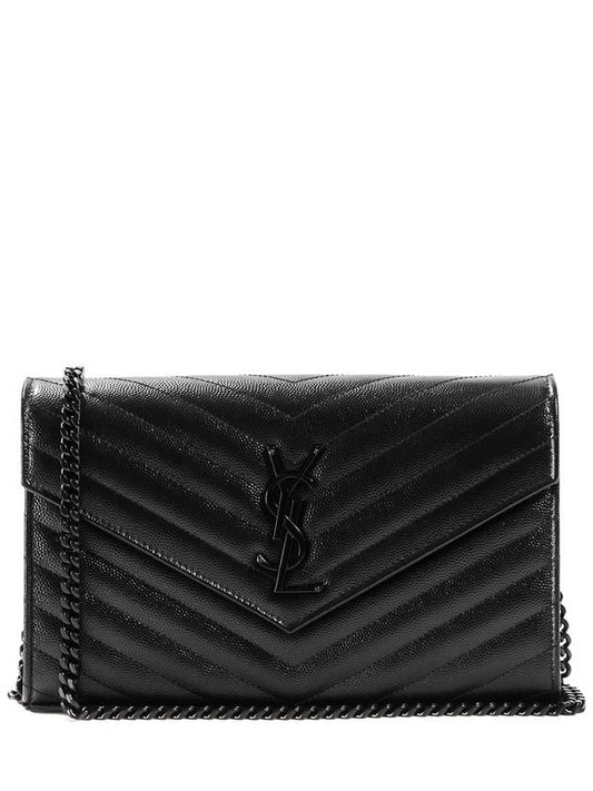 Saint Laurent Monogram Envelope Chain Wallet Cross Bag Black