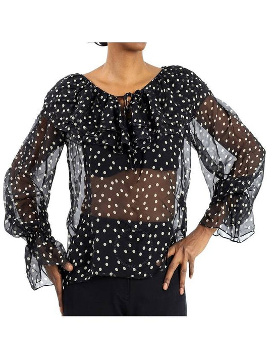 Saint Laurent Women's Ruffle Detail Polka Dot Blouse Black