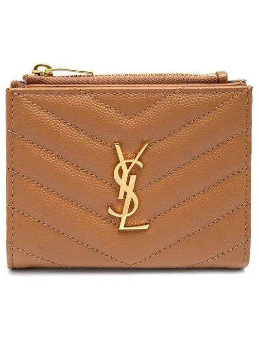 Saint Laurent Cassandre Matelasse Grain De Poudre Embossed Leather Half Wallet Brown