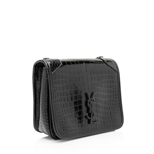 Saint Laurent Croc Embossed Leather Monogram Niki Chain Wallet (SHF-23549)
