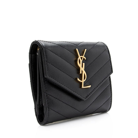 Saint Laurent Grain de Poudre Monogram Compact Tri-Fold Wallet (SHF-23574)