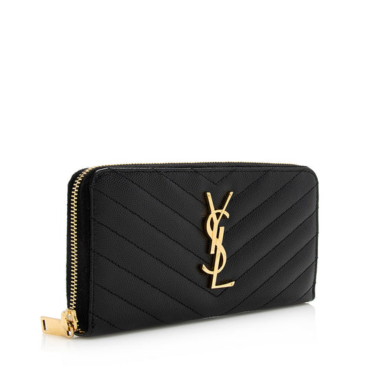 Saint Laurent Grain de Poudre Monogram Zip Around Wallet (SHF-23412)