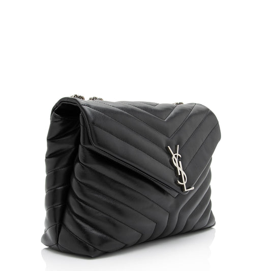 Saint Laurent Matelasse Calfskin Monogram LouLou Chain Medium Shoulder Bag (SHF-23572)