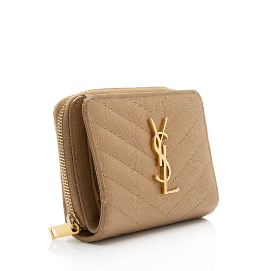Saint Laurent Matelasse Grain de Poudre Monogram Compact Zip Around Wallet (SHF-23548)