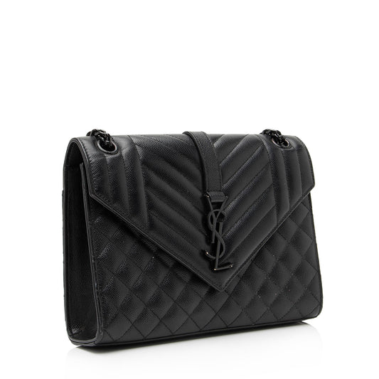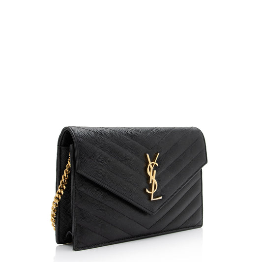 Saint Laurent Matelasse Grain de Poudre Monogram Envelope Chain Wallet (SHF-23410)