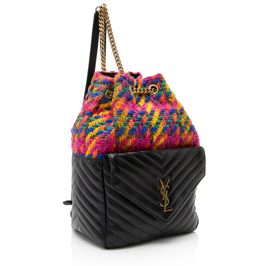 Saint Laurent Matelasse Lambskin Tweed Monogram Joe Backpack (SHF-23097)