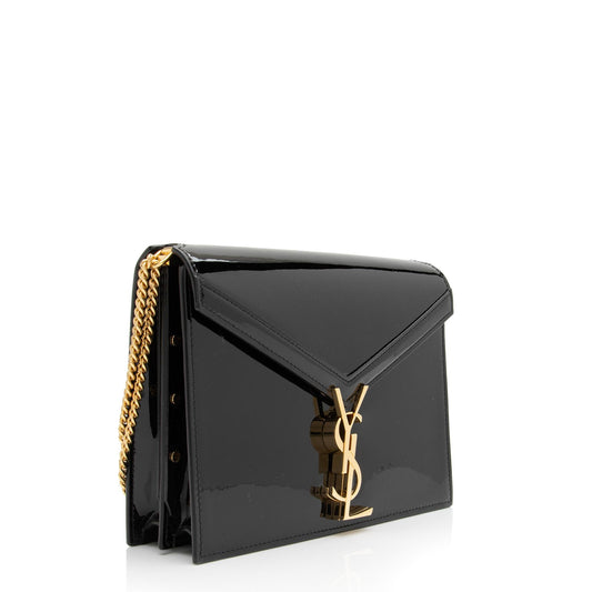 Saint Laurent Patent Leather Monogram Cassandra Medium Chain Bag (SHF-23413)