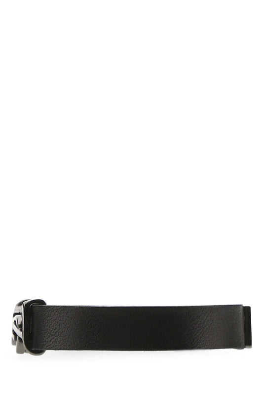 Saint Laurent Men Black Leather Opyum Bracelet