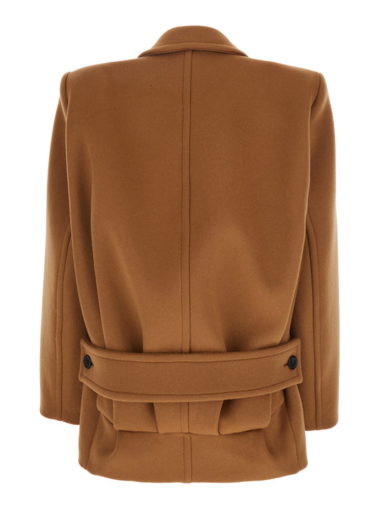 Saint Laurent Women Brown Coat With Classic Lapels And Shoulder Pads In Virgin Wool Woman