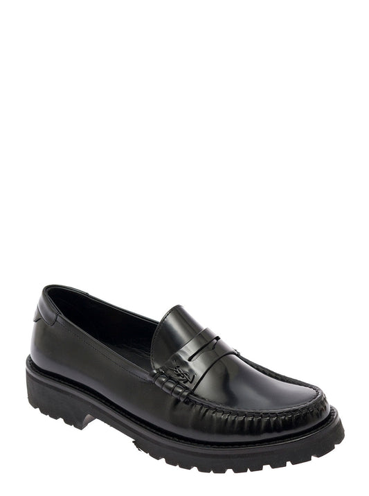 Saint Laurent Women 'Le Loafer' Black Loafers With Chunky Sole And Cassandre Detail In Smooth Leather Woman
