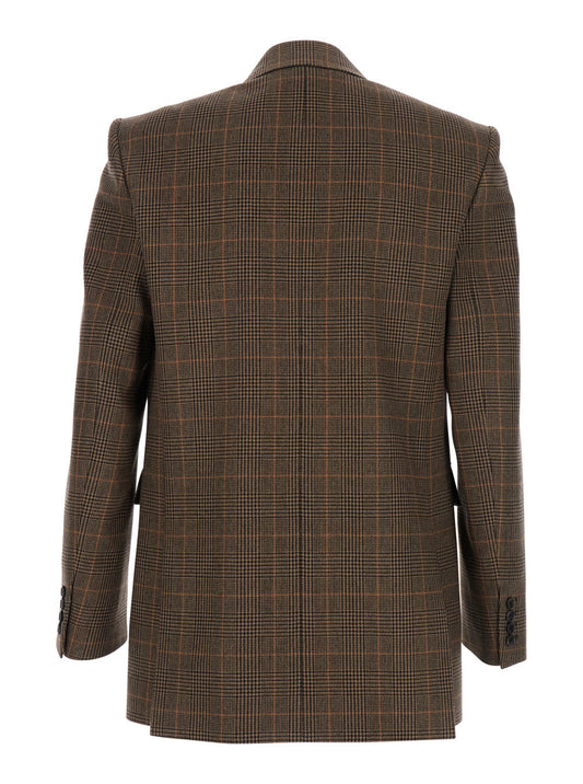 Saint Laurent Men Brown Double-Breasted Jacket With Peak Revers And Stripe Motif In Wool Man