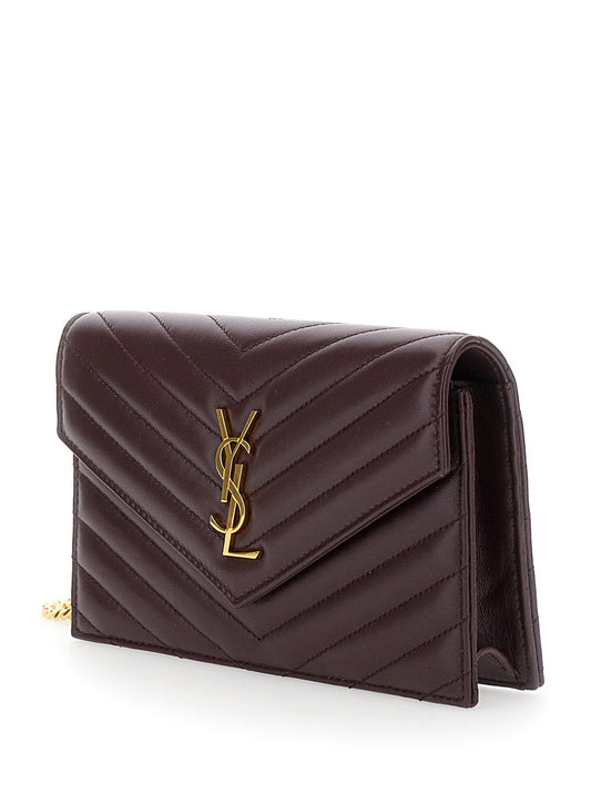 Saint Laurent Women Bordeaux Mini Bag With Cassandre Plaque On The Front And Chain-Link Shoulder Strap In Quilted Leather Woman
